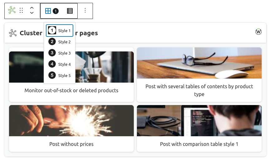 You could see the different Wasabi Theme’s post or page cluster block styles in this post. You will also see how it can be configured by manually selected posts, recent posts, or posts of the same category or tag. You can do the same for pages.